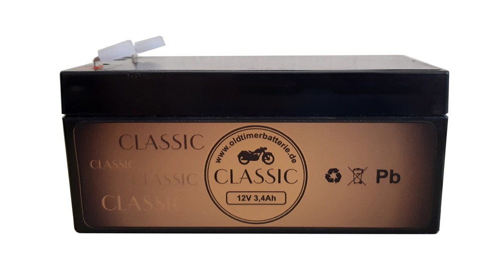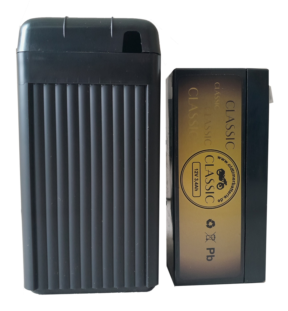 Komplettset - Oldtimerbatterie.de - Classic Gehäuse DIN (0)0811 mit AGM Akku 12V 3,4Ah