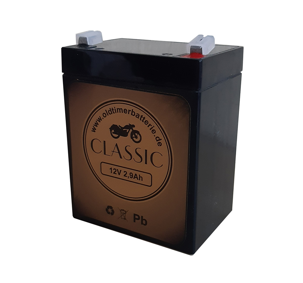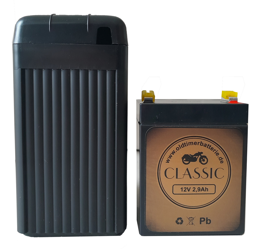 Komplettset - Oldtimerbatterie.de - Classic Gehäuse DIN (0)0811 mit AGM Akku 12V 2,9Ah